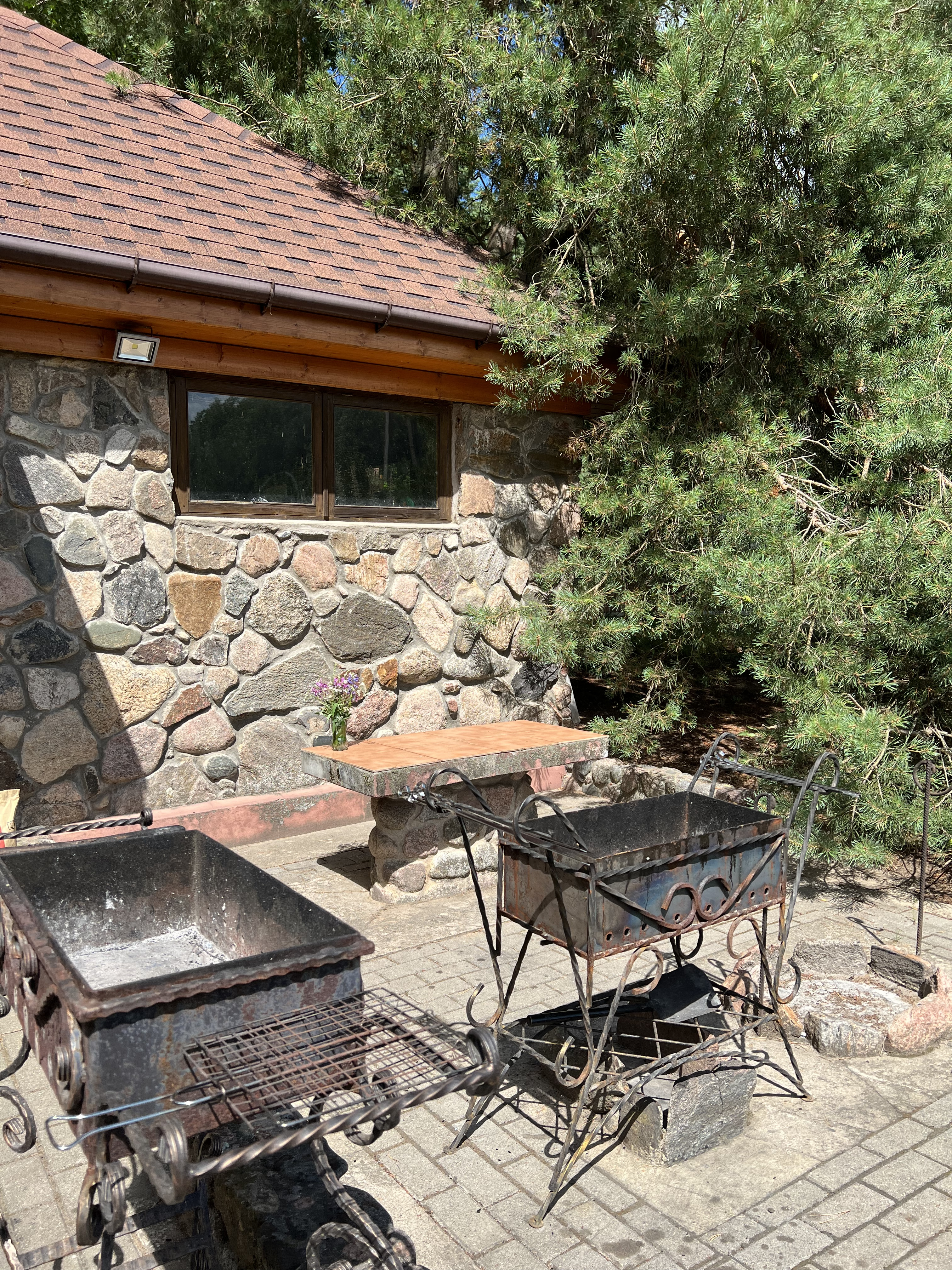 Комфортная мангальная зона на берегу живописного озера – отличное место для уютного пикника.